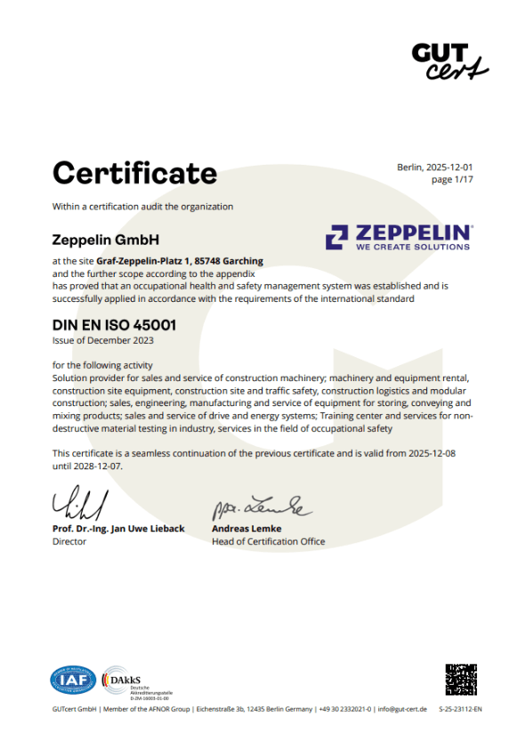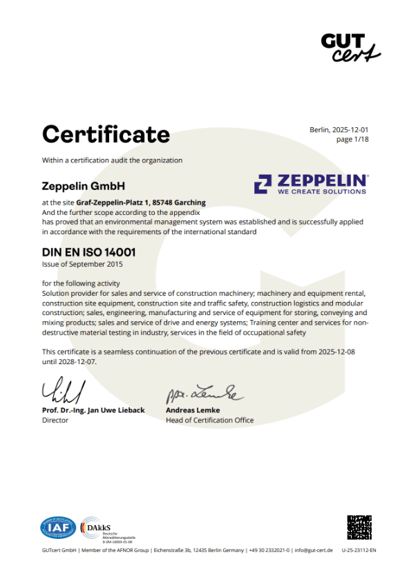 Sustainability is viewed holistically at Zeppelin, and environmental, economic, and social aspects are considered to be of equal importance and value.